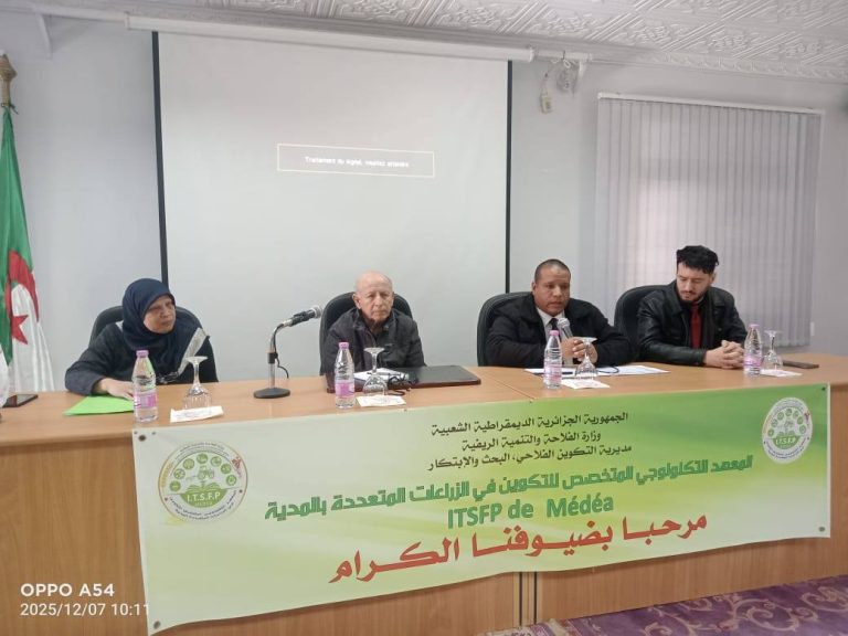 تم على مستوى المعهد التكنولوجي المتخصص للتكوين في الزراعات المتعددة بالمدية ITSFP، افتتاح الدورة التكوينية الأولى في موضوع: إنشاء، تسيير وتحيين قواعد البيانات الحرفية الرقمية والمكانية، هذه الدراسة من تنظيم محافظة تنمية الفلاحة في المناطق الصحراوية CDARS و من تأطير…